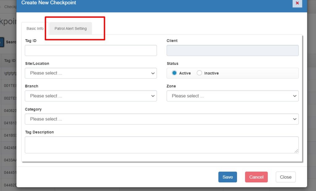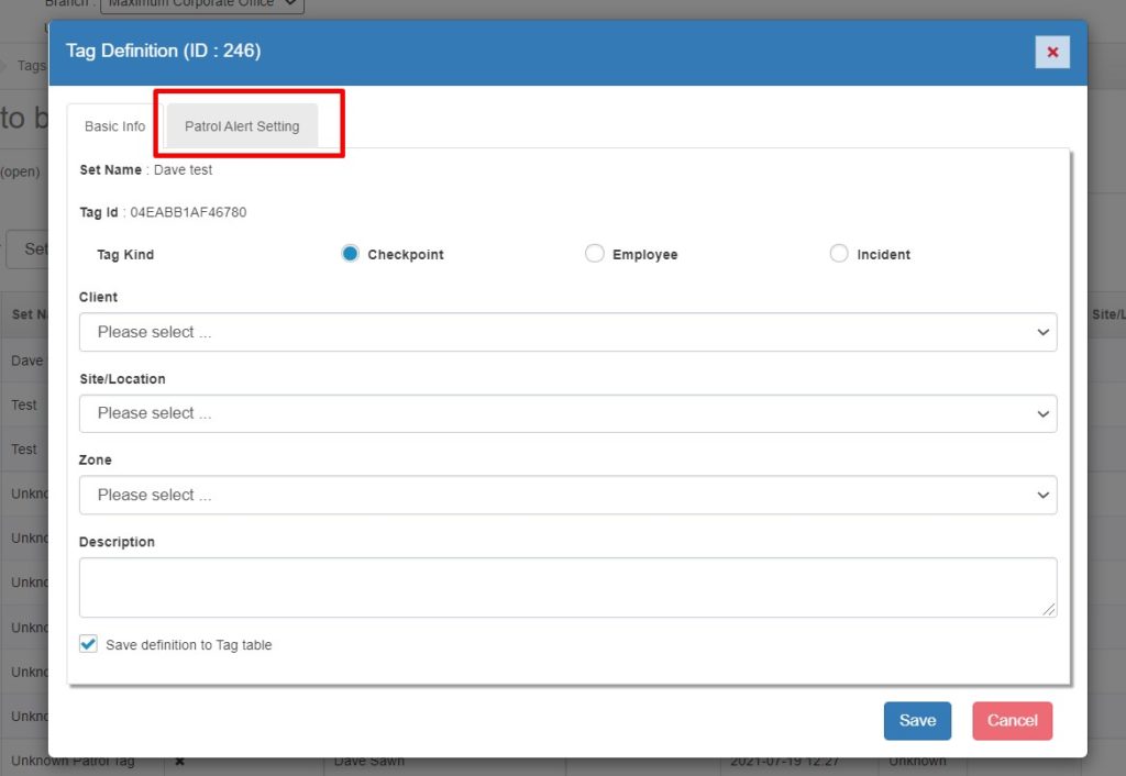 Users can define tags from this section and also can set alerts for early,late,on time, missed from the patrol alert setting tab.