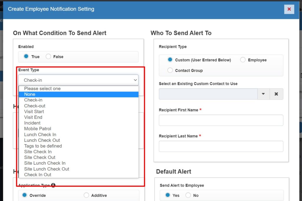 At the client level admin can set three types of tag type to alert on “Checkpoint, employee & Incident”.