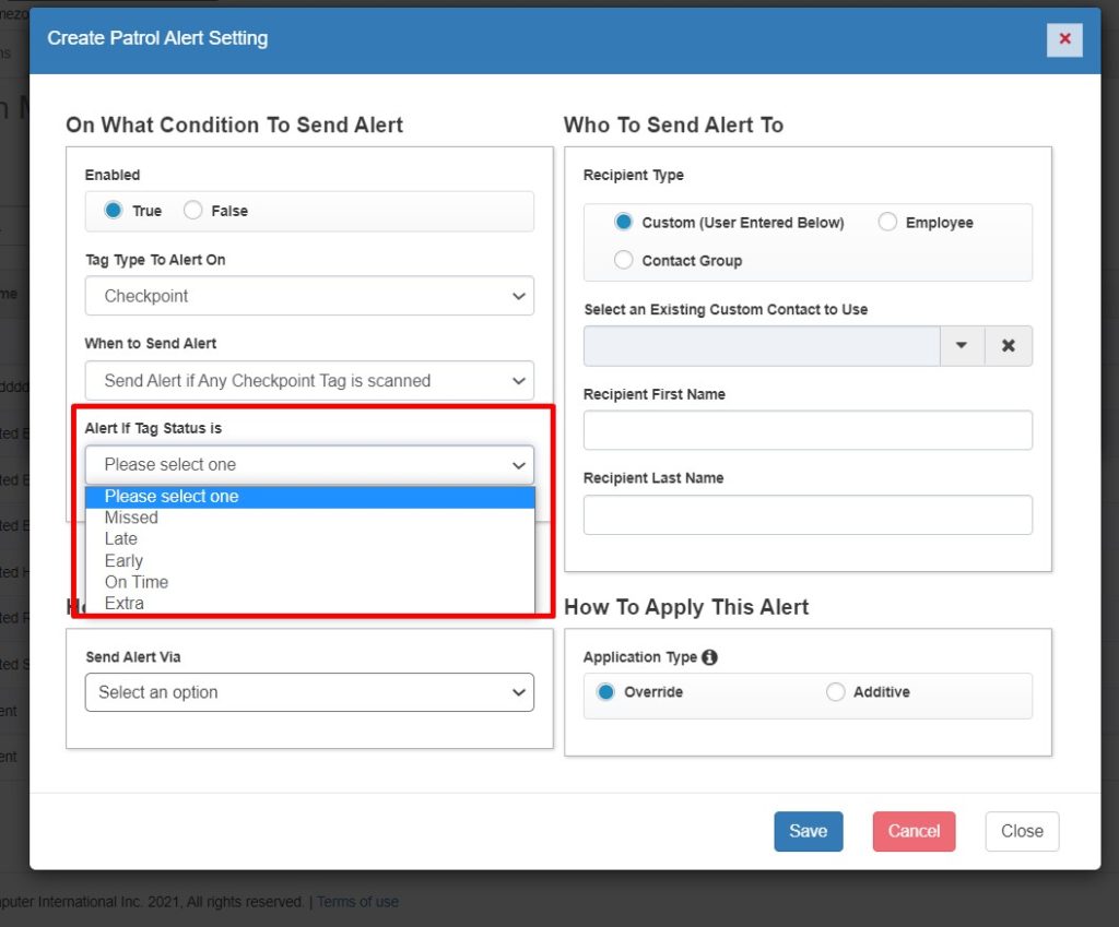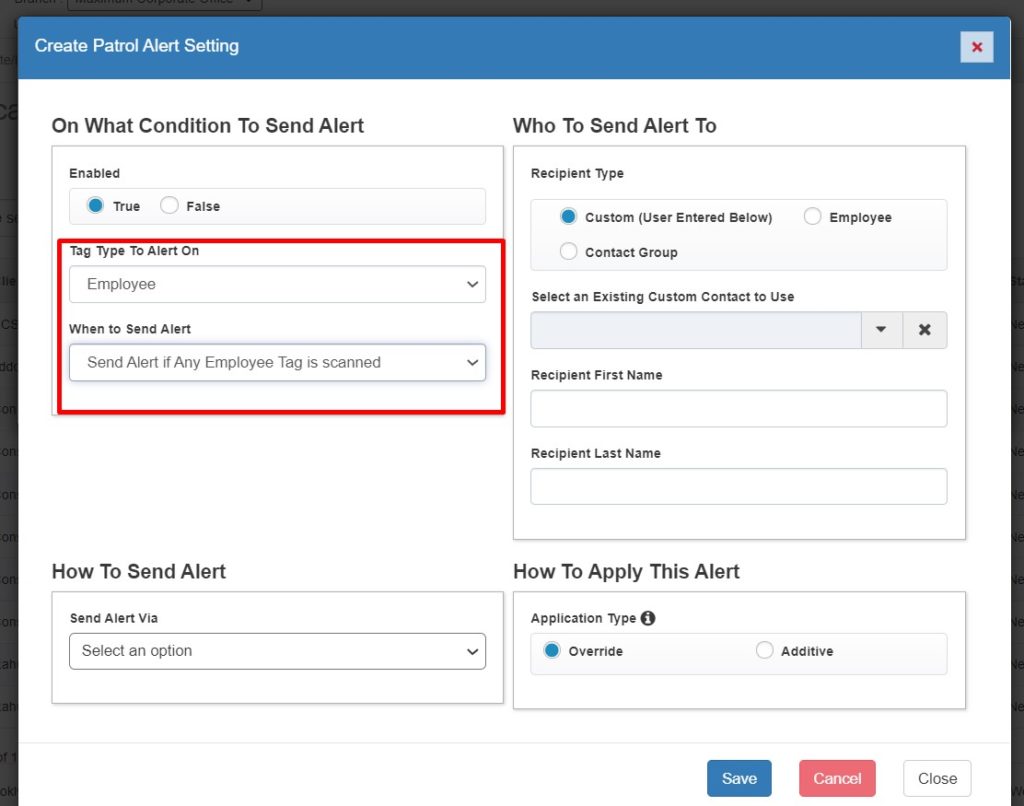 Employee Alert To Be Set For If Status Is: If Any Employee Tag Is Scanned Or Employee Tag Is Scanned