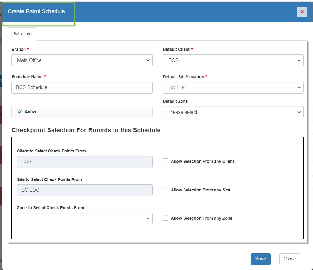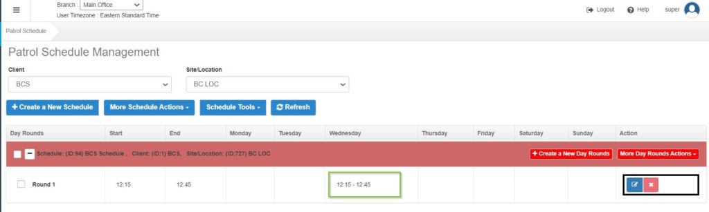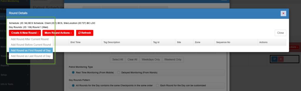 Go to patrol schedule-> Select client & Location-> Create new schedule