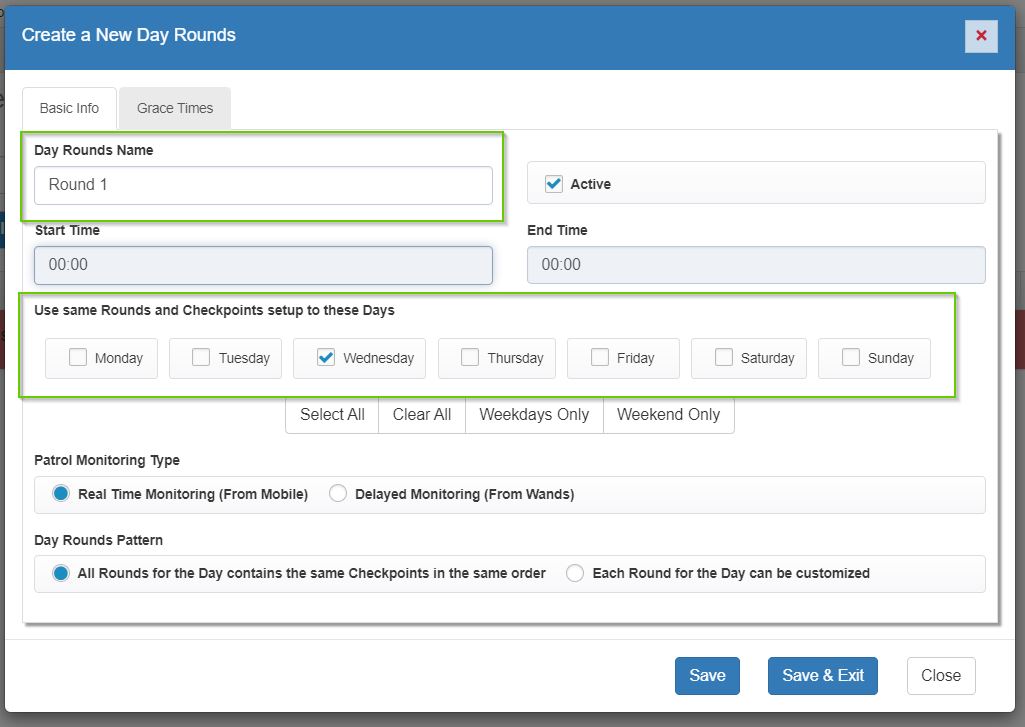 In the day round page we can select “Round and setup to the n days” and give the day round name from this page.