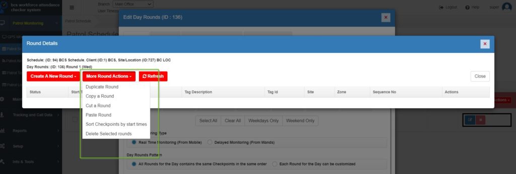 In the round detail page users can create a schedule round for the security guard.Users can create multiple rounds in one schedule.