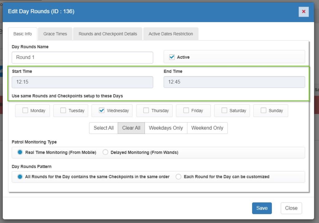 ROUND DETAILS->CREATE ROUND (START AND END TIME)