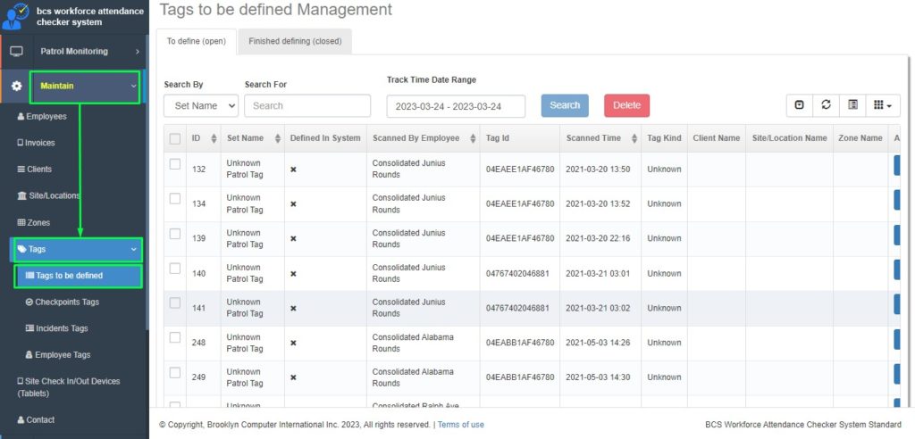 Step 2: Log in to BWAC Portal and go to Maintain > Tags > Tags to Defined
