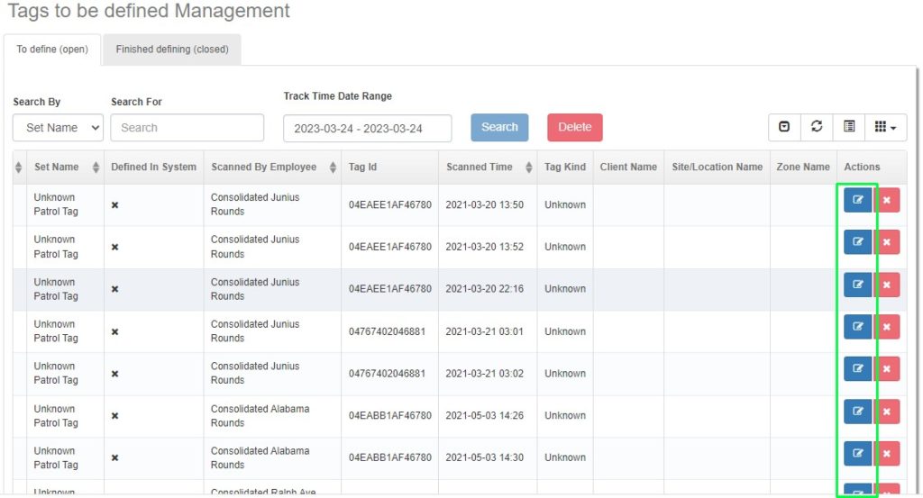 Step 3: Click on the Edit button of an undefined tag user needs to define in the portal.