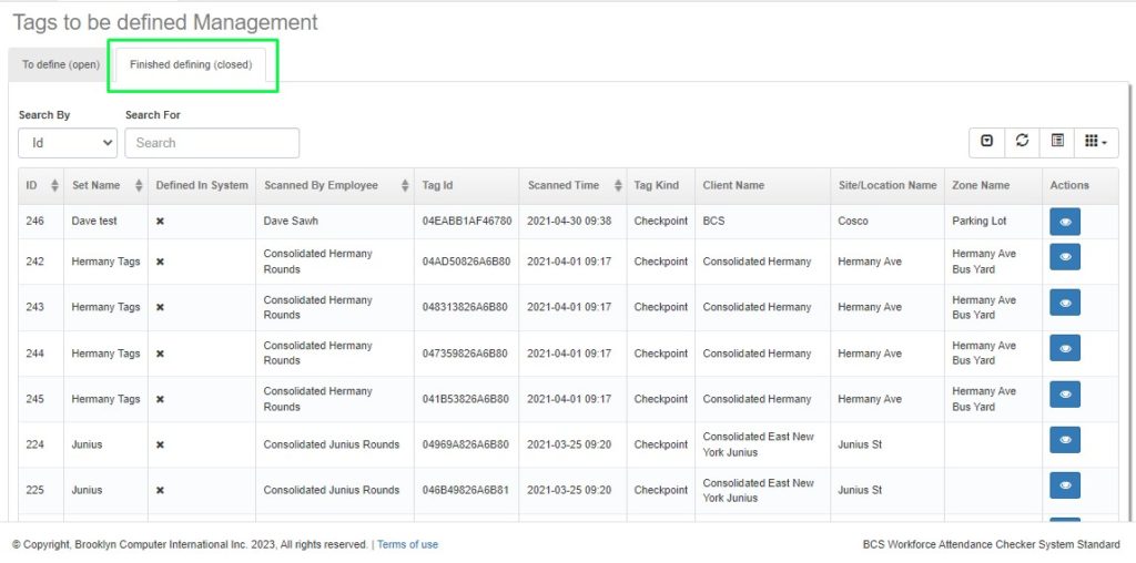 The Defined tag will be transferred to the Finished Defining (Closed) tab.